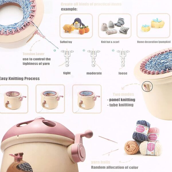 ماكنة سهلة الاستخدام لنسج الألعاب والديكورات المنزلية والقبعات واللفحات والعديد من المنسوجات الأخرى
